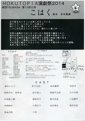 2年生の紺野愛さんが、所属する劇団TSUBAKIの舞台『こはく』に女優として出演致します。