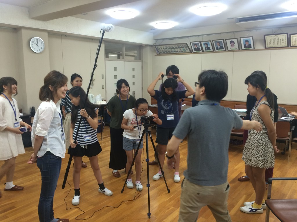初回は7月29日に高松小学校と大正大学でカメラやマイクの使い方、インタビューの収録訓練、作品の企画会議が行われました。