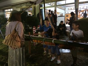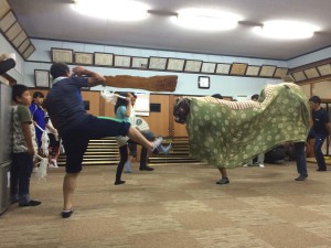 また、夜には9月18日(日)に八幡神社で行われる、例大祭の練習へ見学に行きました!