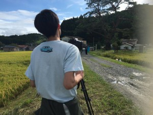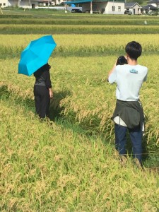 14時からは田んぼでの撮影を行いました。田んぼの撮影は昨日撮っておいたのですが、今日の方が日が出て小麦色の稲がとても綺麗だったので撮り直しました。
