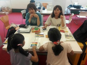 小学生の女の子たちは戸惑いながらも、優しく指導してくれる大学生のお兄さん、お姉さんの言うとおり演技をしてメインキャラクターを演じてくれました。