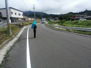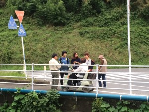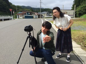 2班はまず最初に10時にいりやどの前の道路で撮影を行いました。そこでは私たちの作品の主人公のカットを撮りました。