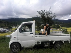 その時、トラクターに乗った男性と出逢いました。その方はなんといりやどの前で声をかけてくださった方でした。その方も今から東屋に行くので、トラクターの後ろに乗っていいとおっしゃってくれたので、お言葉に甘えて乗せてもらいました。