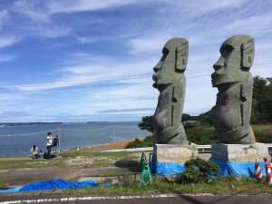 4班は旧戸倉中学校でのロケを行いました。芳賀さんが主役となり、旧戸倉中学校に設置されているモアイ像が語りだしコミュニケーションを取るという作品で、多くのシーンを撮影することに成功いたしました。
