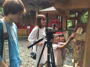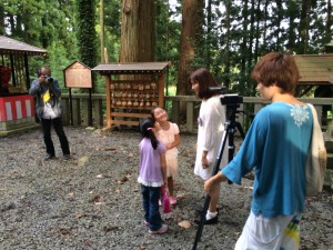 1班はワークショップに来てくれた小学1年生の女の子2人と八幡神社へロケにいきました。