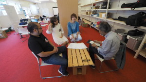 最初小学生の女の子二人と地元の男性の方が二名、作業場である会場に来てくださいました。その後も下校中の小学生が4名来てくれました。みんなで絵を描いたりカメラをいじったりと作業場の中が賑やかになってとても楽しかったです。