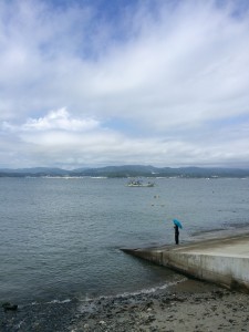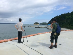 2班は志津川の更に先の堤防まで行き、海を背景にした撮影を行いました。