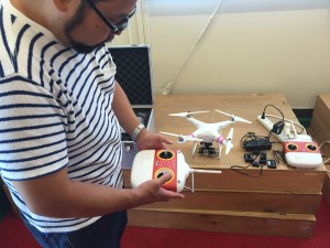 使用方法の具体的な講習だけでなく、航空法改正による撮影についての注意事項なども講習が行われ、その後実際に学生が操縦してみるワークショップとなりました。