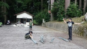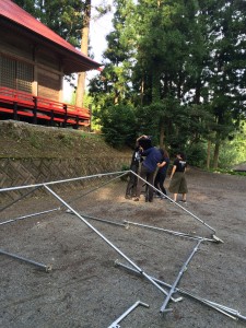 本日は会場の入谷八幡神社境内の設置作業を行うことからスタートしました。
