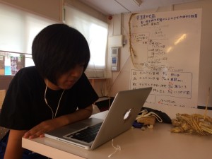 毎朝定例のミーティングにて進捗報告を受け、昨晩夜通しで編集を頑張り朝を迎えた班が多く、それほど学生は力を入れて作品制作を行いました。
