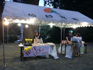 南三陸観光協会からお借りしたテントを張り、大正大学施設課からお借りしたPA設備を組み、ホットドッグ、ナチョス、チュロス、タピオカドリンクの各屋台は調理を行い準備を開始いたしました。