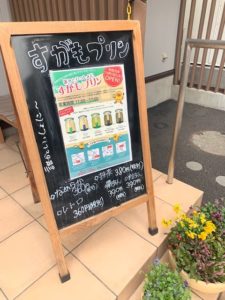 アロマキャンドル試作品(左)、すがもプリン(中、右)