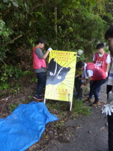 学生たちとのボランティア活動(2)学生がデザインした看板の設置