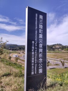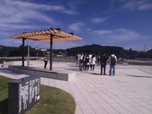 中橋を渡り、南三陸町復興祈念公園で石碑や南三陸町旧防災対策庁舎などに触れ、貴重なお話とともに案内をいただきました。