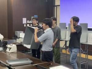架空の候補者と公約に対して投票を行い、実際に選挙で使用されている器具を用いて開票しました。