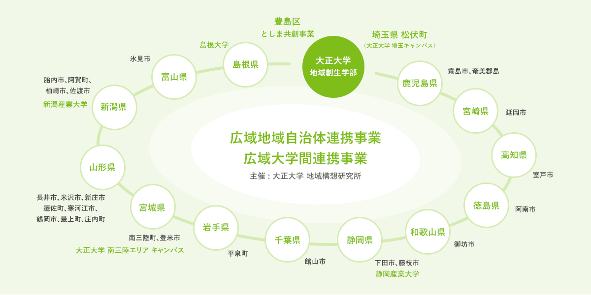 今、日本では都道府県から地域の市区町村に至る行政、企業、各種団体、そして日本で暮らす一人ひとりのつながりから生まれるネットワークの拡大が求められています。だからこそ、これからの社会を築いていくみなさんには、都市の視点で地域活性化に貢献し、それと同時に地方の視点で都市問題にアプローチできる力が必要になると大正大学は考えます。数週間にわたる長期の地域実習を軸に、都市と地方の双方に関わりを持ちながら、日本の未来を創造できる「地域人」を目指しましょう。
