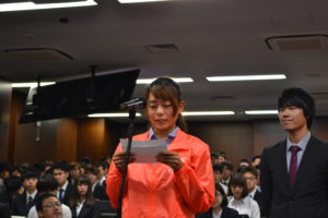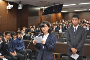 宣誓をした福島晴夏さん、平野俊太郎くん(2年)