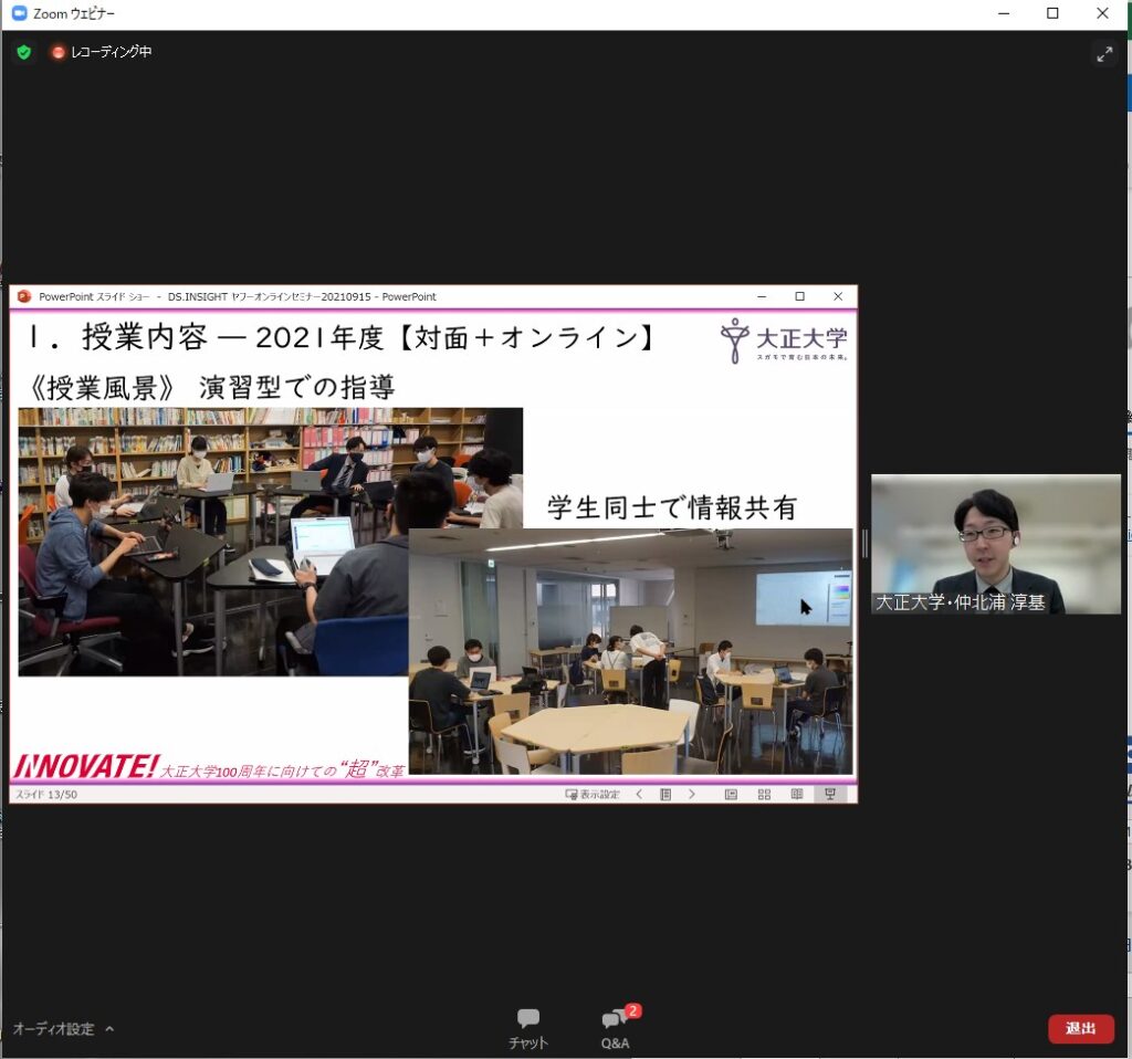 仲北浦先生はゼミや授業でDS.INSIGHT for Academyを活用して授業を行っています。