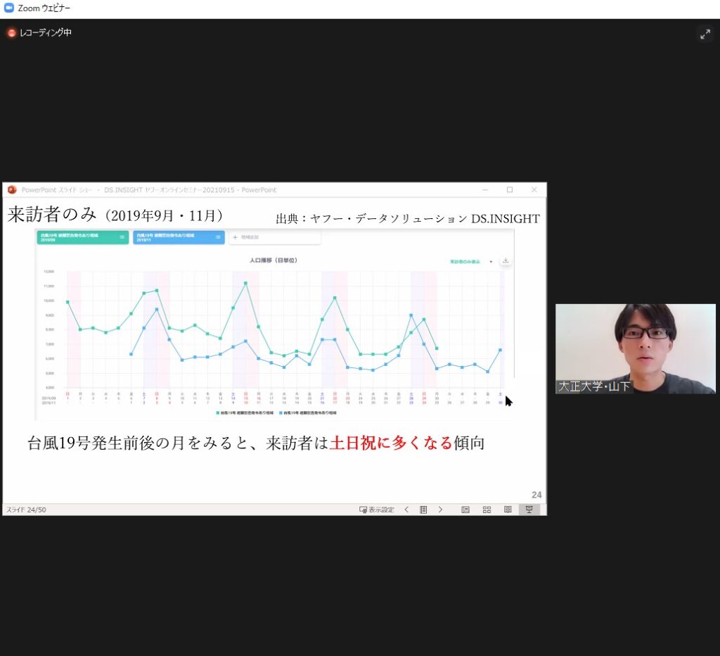 教育DXセミナー〜人文系大学におけるデータサイエンス教育の取り組みとヤフーのビッグデータ活用〜に仲北浦先生、4年生山下友一朗君が登壇しました!