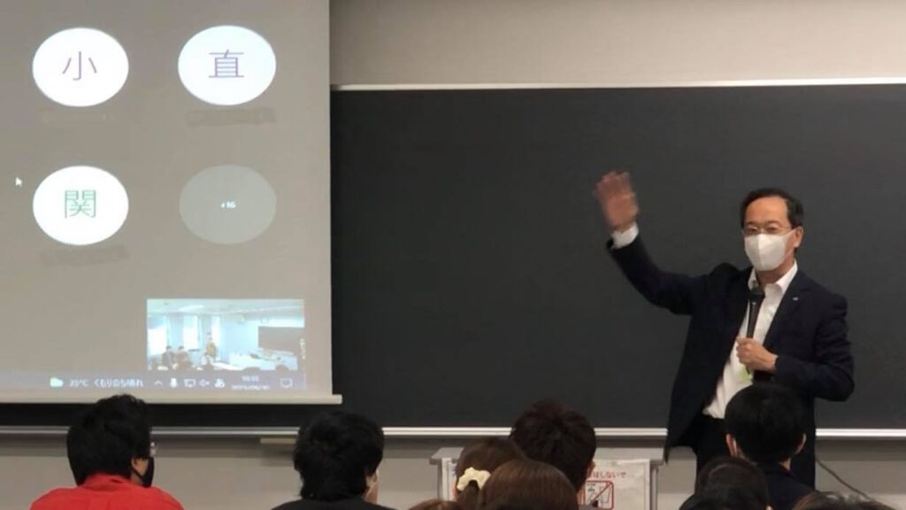 そして翌30日、短時間ながら、所用で本学に来訪された都竹淳也・飛騨市長を教室に迎え、