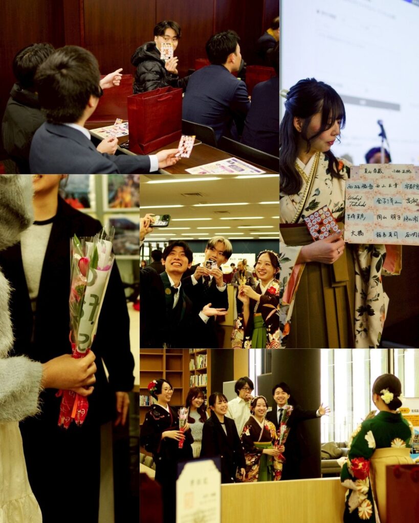 学位授与式当日は、先生方や学生同士で思い出を語り、朗らかな雰囲気で素敵な時間を過ごしていました。