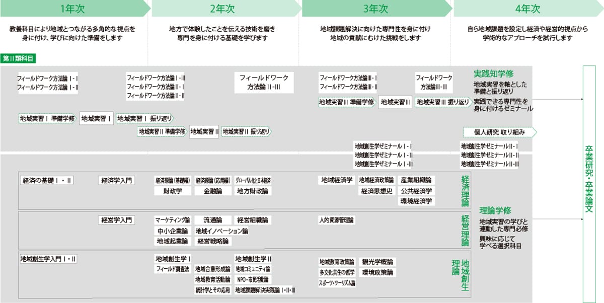 地元に戻って働きたい、新たなビジネスで地域を変えたい、NPOで人の役に立ちたい。それぞれの目標やスタイルに合わせて、自分だけの未来を描けるように地域社会について経済学・経営学の観点から広く学びます。