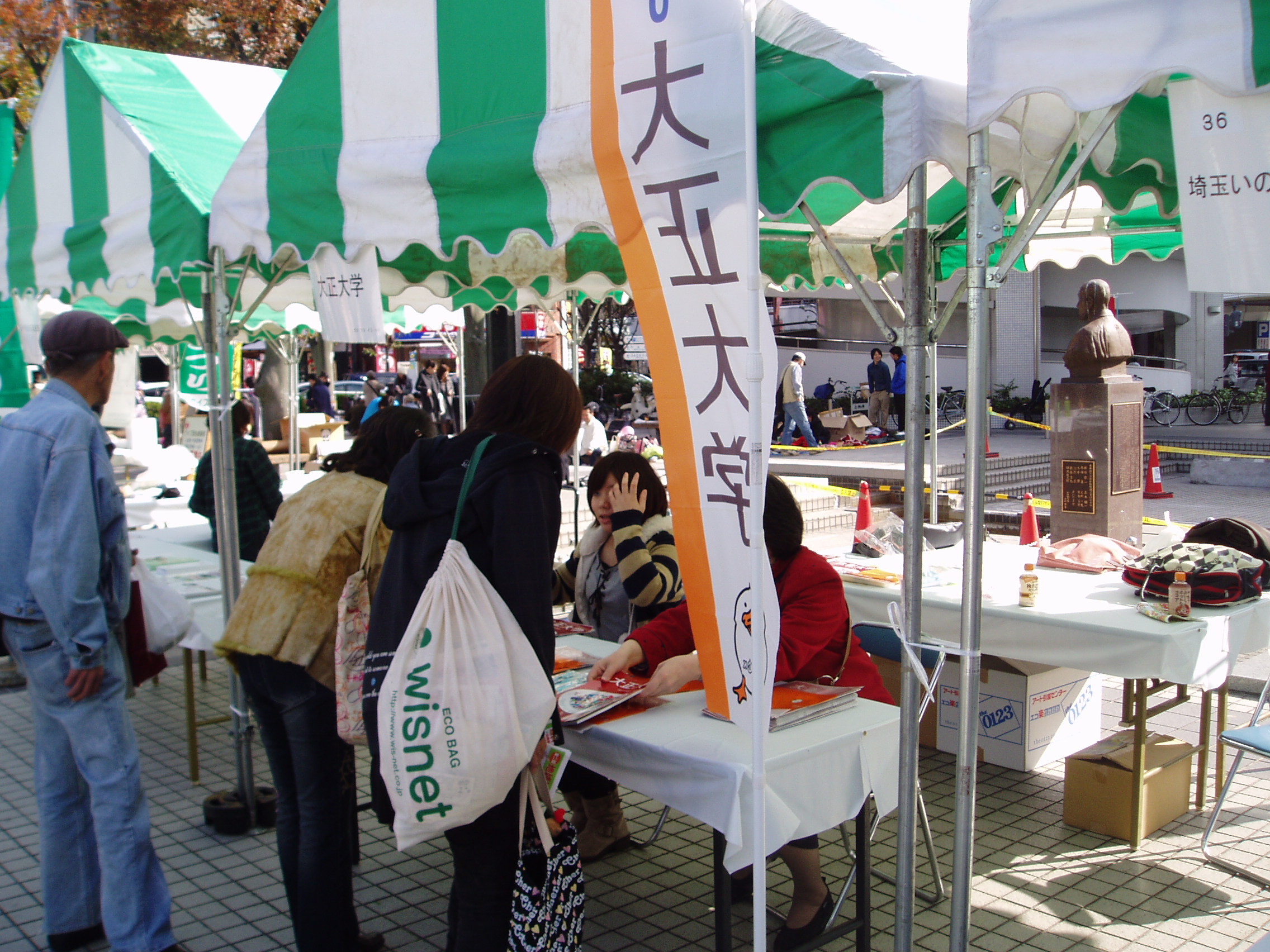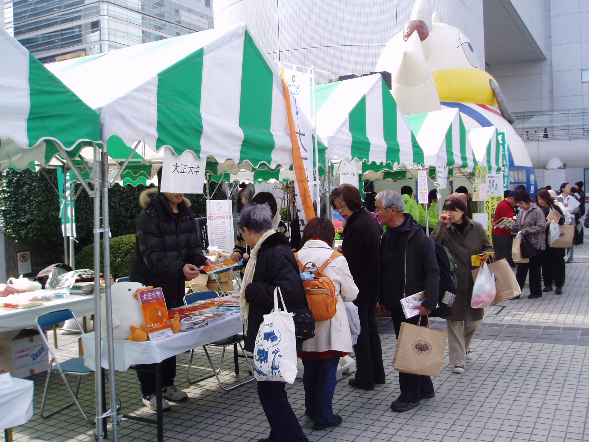 開催日は11月21日(日)、場所は大宮ソニックシティのお祭り広場。晩秋の好天に恵まれ、広場いっぱいのブースがたくさんのお客さんで賑わいました。大正大学のブースにも多くの人が訪れていただき、用意した大学案内や大正大学グッズが足りなくなるほどの人気でした。