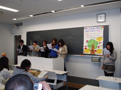 ソーシャルワーク論Ⅴは、コミュニティワークという社会福祉の実践方法を学習する時間です。これまで私が担当した10年間、シラバスの前半でコミュニティワーク理論を講義し、これを踏まえて後半では、70~100名の学生が10人弱ずつのグループにわかれ、各グループでイベントの企画や事例研究を行っています。今回はこの様子をご紹介しましょう。