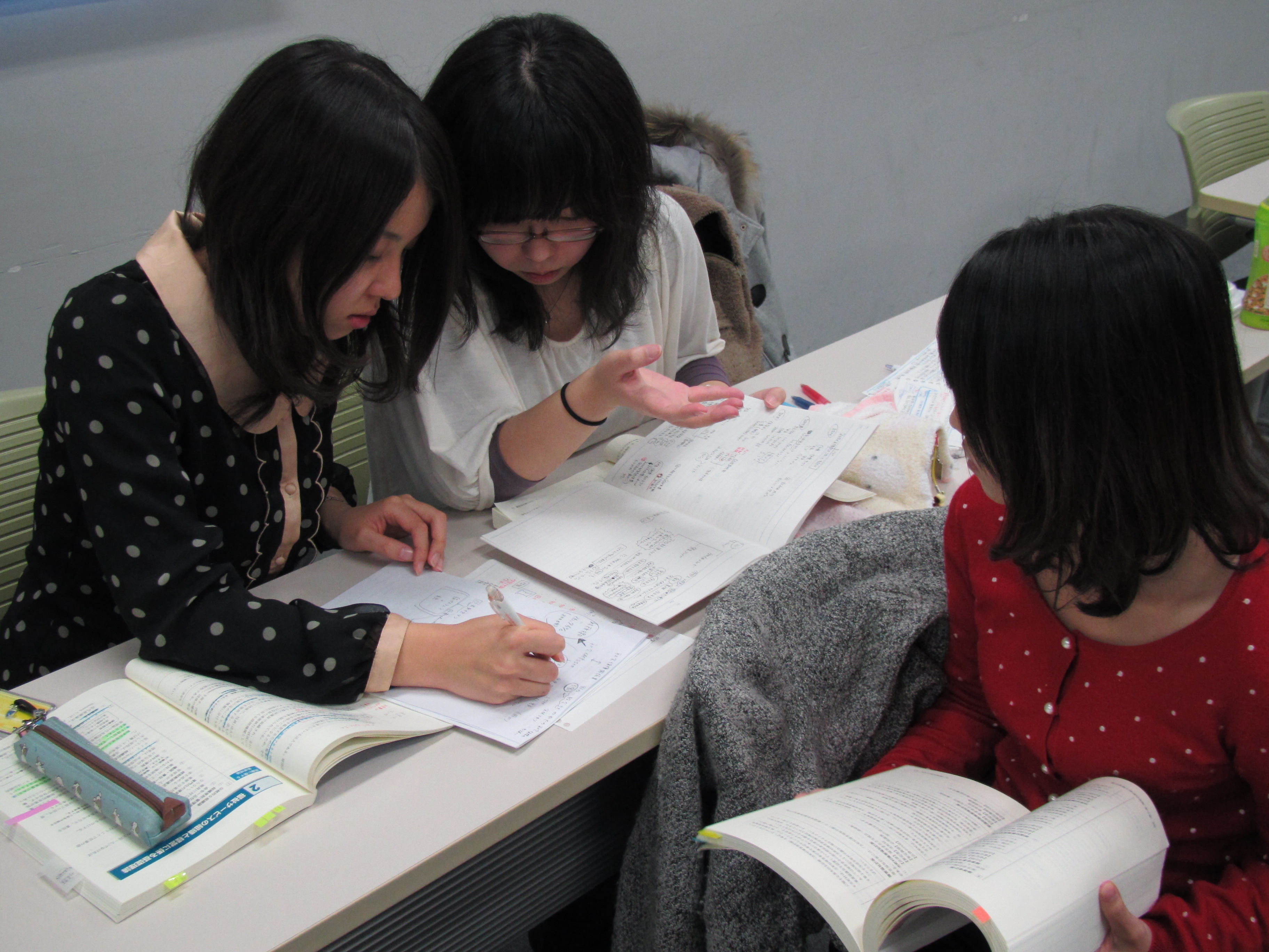 そんな中、今年は、受験する4年生から頼もしい申し出がありました。国家試験に向け、自発的に集まって勉強会を行いたいというのです。名付けて「合鴨の会」。授業や対策講座がない時間に集まって、自己学習を基本に、苦手な科目を教え合い、情報交換をしています。様子を見に来た教員には必ず質問があり、学生の本気度が伝わってきます。
