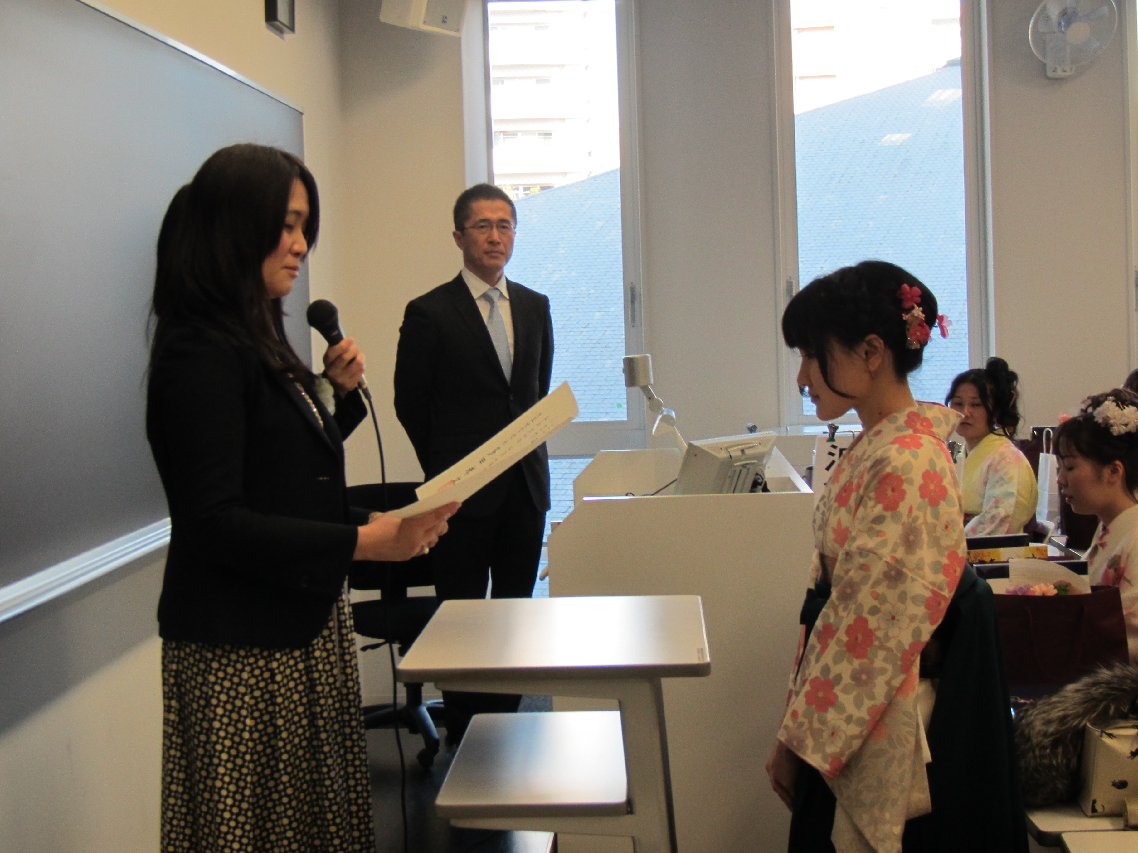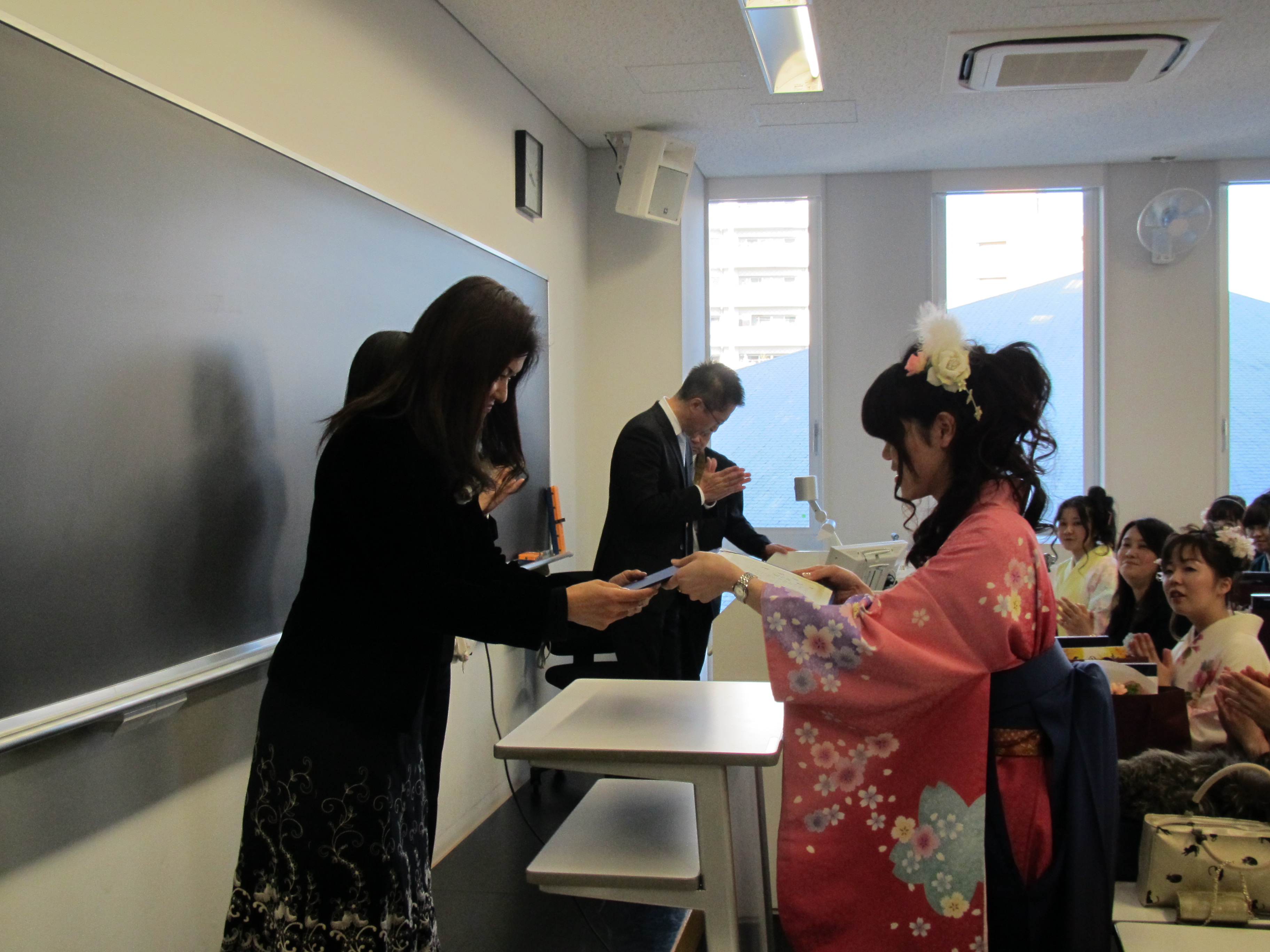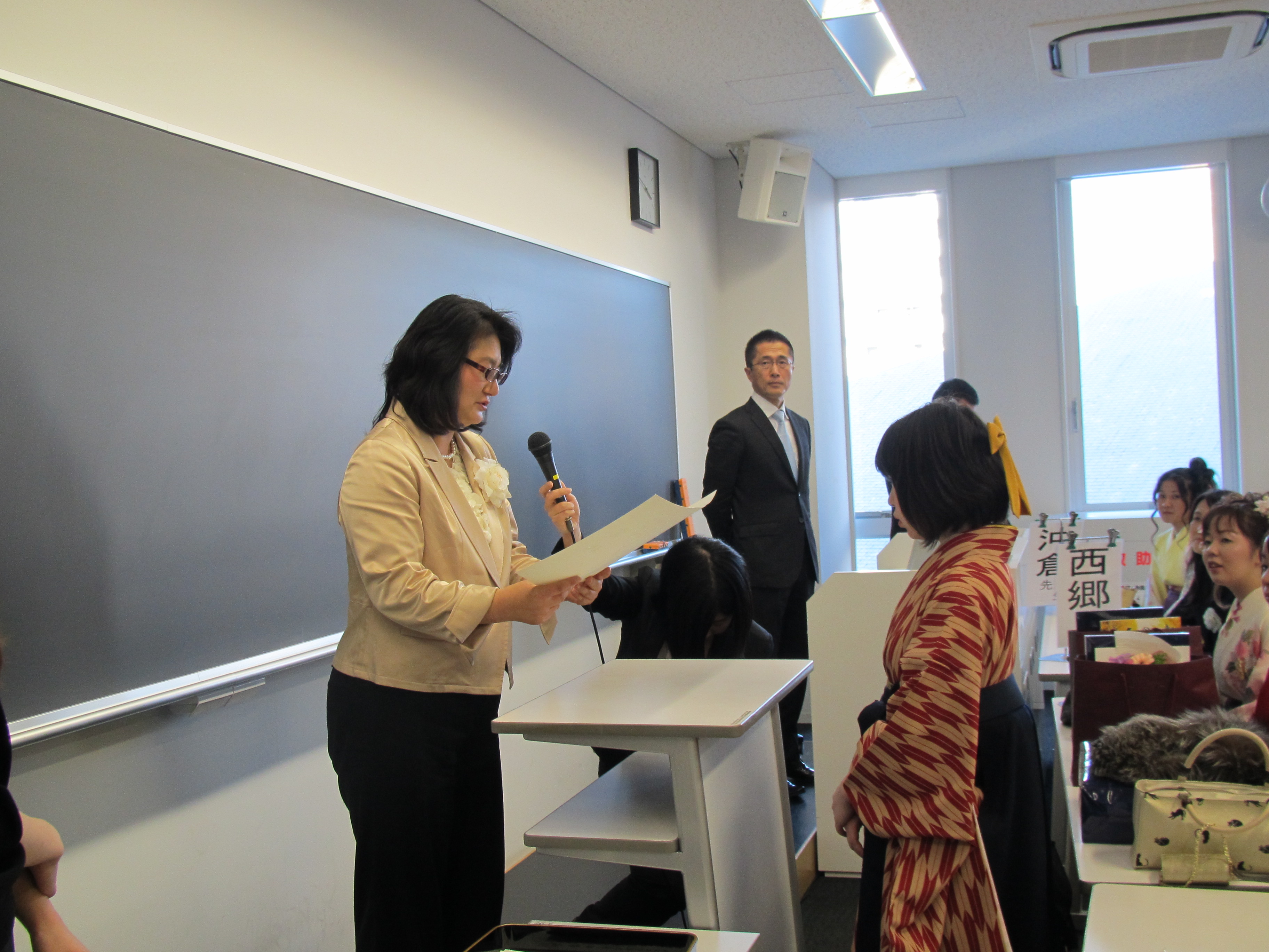 多田孝文学長の「最終年を目前に東日本大震災とその不安の中、よく耐え学業を完うされた」と門出の言葉にあるように、この一年は人生の中で最も忘れられない学生生活であったと思います。卒業後は新天地で社会人としてご活躍されることを期待しております。