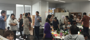 当日は、卒業生が25名、そしてその子どもたちが卒業生の数を上回る人数となり、50名を超えにぎやかなひとときとなりました。3人の子ども連れ、双子を連れての参加もあり、子どもたち同士もすっかり仲良しになっておりました。この学年は、学科の同級生同士の結婚が6組ぐらいあることも今回判明しました。