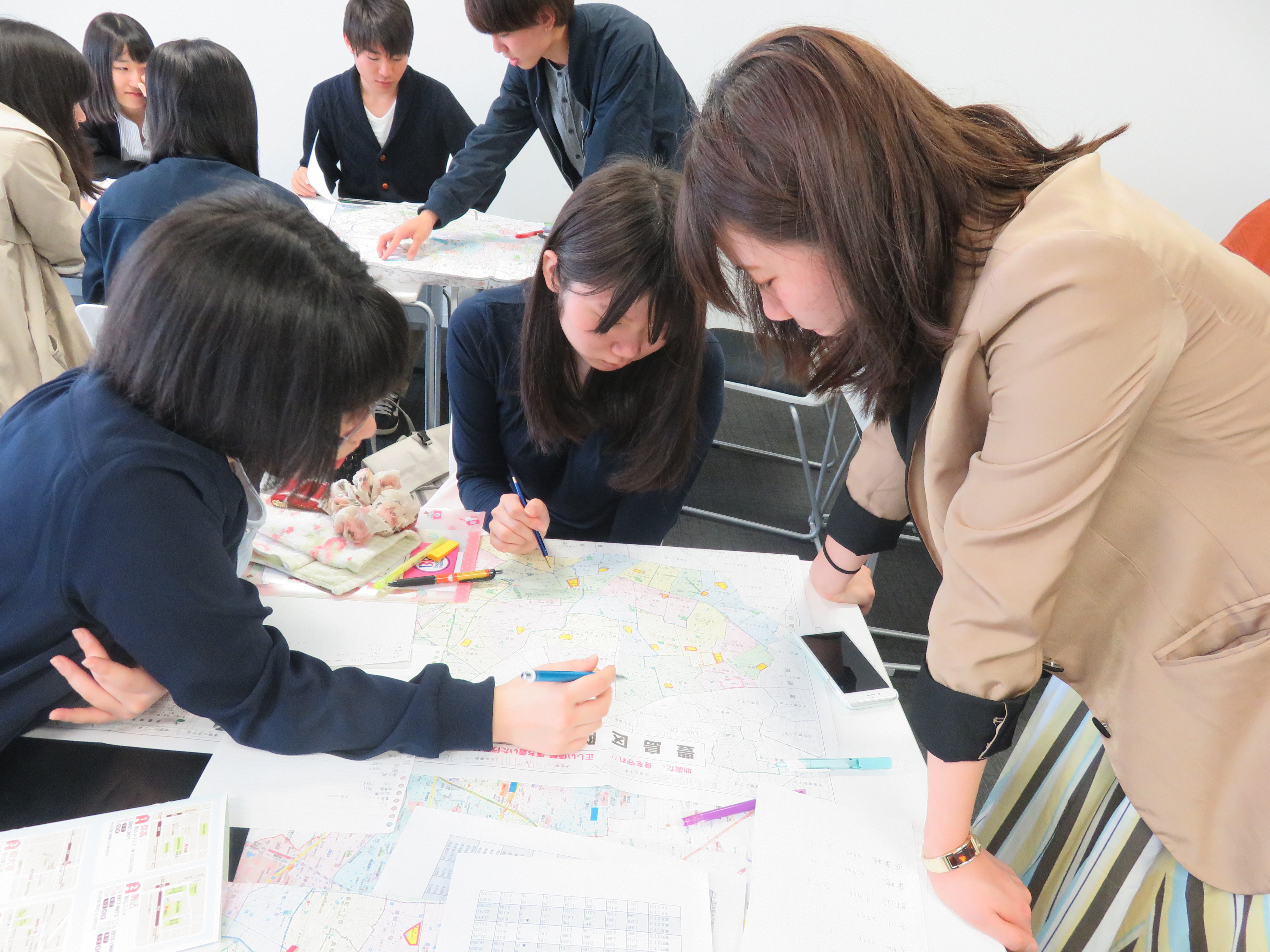 福祉マップ作りでは、普段歩いているまちも福祉の視点から見てみると、安全に暮らせるための工夫がされていたり、多くの社会資源があることに気が付きました。