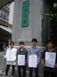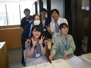 当日は、入試相談会、鴨台花まつり等の大学行事が開催され、訪問者も多かったので、大学周囲で場所を分担して案内に立ちました。また、会場準備や受付から後かたずけまで、協力しました。