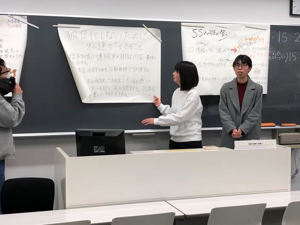 講義後学生たちは、提起された課題に対して、将来親となる立場としてどのように対処したらよいか、3つのグループに分かれて討議を行いました。