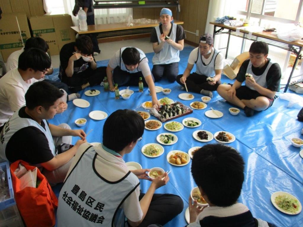 民生委員の方が前日から準備をしたという昼食を頂いた。輪になって食事をし、今までほとんど関わりのなかった3年生と交流も深めた。