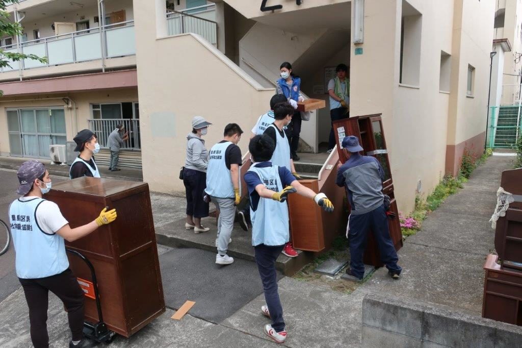 今回、高齢者の方が多く住んでいる都営住宅が老朽化のため、建て替えをすることとなり、住民の方々が引っ越しをしなければなりません。そうなると、高齢者のひとり暮らしや夫婦世帯の方が、引っ越しするために家財道具の処分をしなくてはならないが、「できなくて困った」と、コミュニティソーシャルワーカーに連絡がはいり、少しずつ学生出前定期便で対応していました。