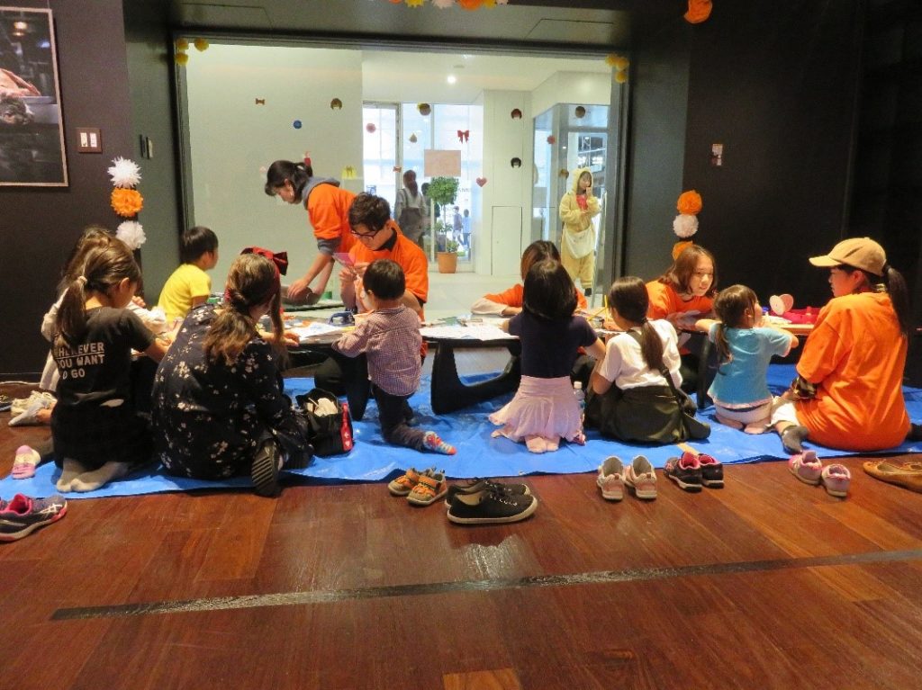 オリジナル塗り絵、栞、オレンジリボン作りコーナーは絶えず子どもと保護者がいました。