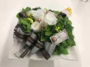 皆さんからいただいたお花は、事務室のカウンターに飾らせていただきました。