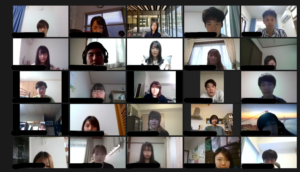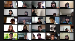 その後9月24日(木)には、オンラインで秋学期ガイダンスを行いました。入学時のガイダンス以降、久しぶりに1年生が顔を揃えました。例年入学時にクラスごとの集合写真を撮っていましたが、今回は教員のアイデアで「ZOOM de 記念撮影」となりました。