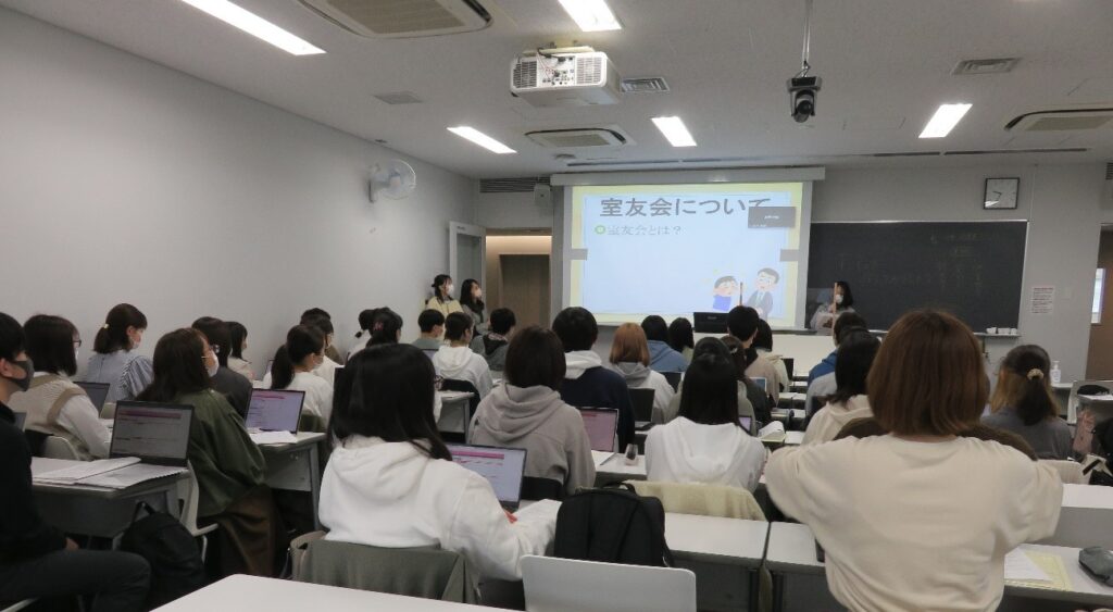 4月1日の入学式からガイダンス、授業が始まりました。今年度は、全面対面授業になり、いつもの賑やかなキャンパスが戻ってきました。新入生のガイダンスの初日には、社会福祉学科の伝統を紡ぐ「室友会」の役員の3年生、4年生の先輩学生たちから、新入生へエールが送られ、室友会の役員への誘いがされました。積極的な学生が多く、役員に手を挙げてくれています。社会福祉学科のリーダーシップを担う予感があります。