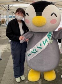 未就学児の子どもや小学1年生から3年生くらいの子どもは、ミンジーをペンギンだと信じきってハイタッチや握手、ハグをしてくれてとても可愛かったです。小学4年生くらいの子どもからは「これ中に人が入ってるよ」と言われつつも、ハイタッチを楽しんでくれて嬉しかったです。また、お昼の時間にフリーマーケットを回ったのですが無添加のジュースや袋麺など興味をそそる品が多くあり面白かったです。(川端穂乃花)