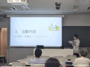7月6日、7日に、中間報告会を開催しました。2つのゼミ合同で、4年生がこれまで取り組んできた卒業研究について10分間の報告を行い、その後3年生、4年生の学生あるいは教員による質疑応答の時間を設けました。