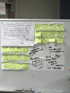 課題図書から知ったことや学んだこと、そしてこれから社会福祉学科でどのような学びをしたいのか、和気あいあいと、真剣に話し合いました。司会進行役、発表用資料のまとめ役、タイムキーパーなど役割も自分たちで分担して、進めていきました。話合いも、まとめも、発表も見事でした!