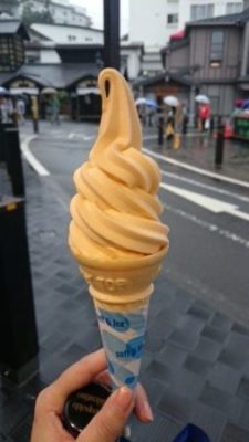 私は、みんなより一足先に温泉を出て、「温泉卵ソフトクリーム」なるものをいただきました。