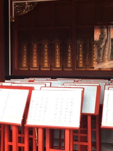 孔子の弟子たちが祀られている部屋に一人ひとりの位牌が置かれています。