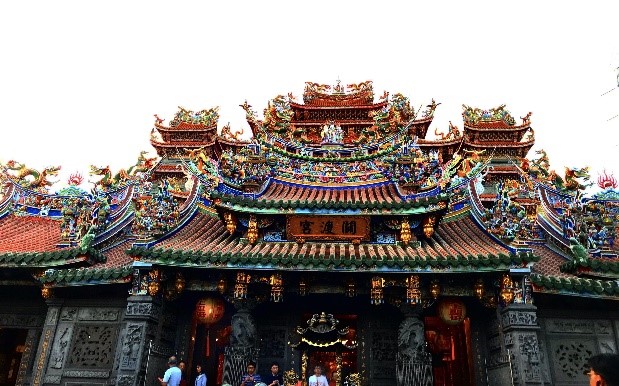関渡宮は、台湾北部で最も古い媽祖廟です。最初に目を引くのはやはり豪華な屋根の装飾でしょう。色鮮やかで力強い印象を受けますが、近くで見ると彫刻が細部にわたって施された繊細な造形をしていて見ごたえがありました。