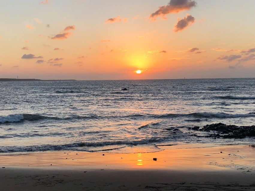 そして日没を迎える直前、漁人埠頭へたどり着き美しい日没を眺めました。歩いて四時間程、墓が見つからなかった事も忘れさせてくれるような達成感でした。