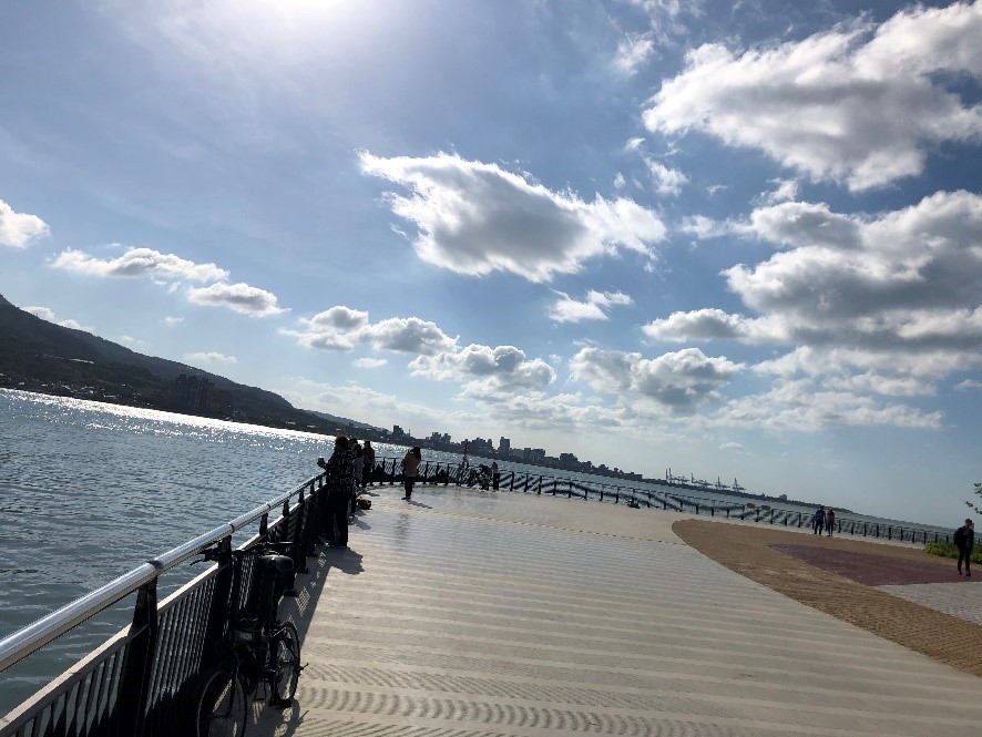 淡水は台湾屈指の観光地であり、九份同様付近に墓が見つかるかもしれないと考え、ここを散策することにしました。私たちは海沿いの遊歩道を使い、徒歩で漁人埠頭へ向かいました。遊歩道からは都市部の立ち並ぶビル群を見る事が出来ます。