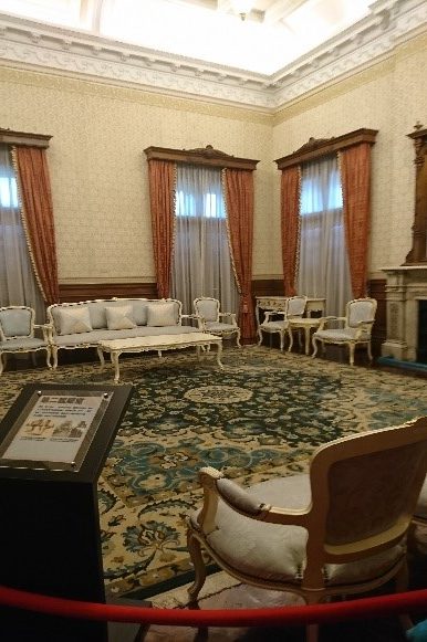 当初はネオ・ルネサンス様式でしたが、その後1911年の改築によって現在その外観はバロック風の建物へと変化しました。 内装の主要な部分は洋館となっていて、当時を再現するように家具が展示されていました。 装飾もきらびやかなものばかりでとてもきれいでした。
