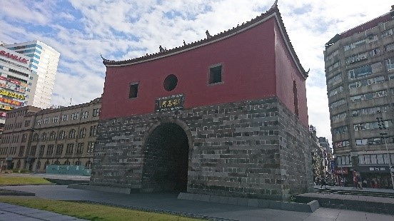 お腹が満たされた後、そのまま近くの西門駅に向かって再びMRTに乗り龍山寺駅へ。 龍山寺駅を降り、続いてガイドブックで見て興味を持った剥皮寮(ポーピーリャオ)に向かいました。 ここは清代の町並みを残した一画で、昔ながらのたたずまいであるアーケード状の歩道と当時に流行したバロック様式で正面を飾った家並みが残る場所です。そんなに町並みは長くありませんでしたが、赤れんが造りがきれいで気分も高揚しました。